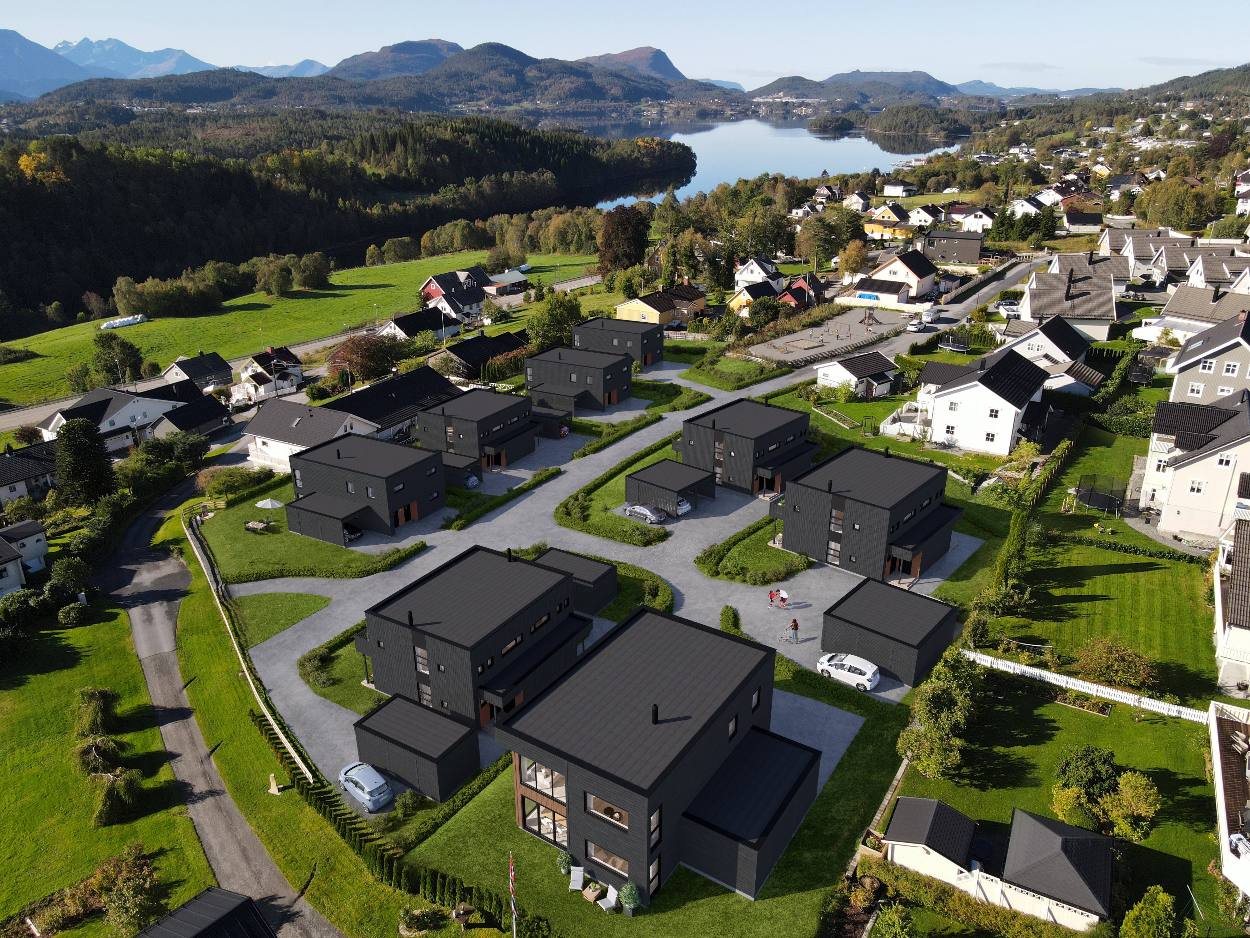 På Skodje tilbyr vi nå fire byggeklare tomannsboliger( 7 av 8 solgt)– det betyr kort tid til oppstart og kort tid til innflytting i nytt hjem. Boligene har sentral beliggenhet med gode solforhold og sørvendt beliggenhet. Her kan du leve det gode liv med naturen rett utenfor døren, kun 15 minutter fra Moa. Boligfeltet er rolig og barnevennlig med en stor innegjerdet lekeplass, et hyggelig møtested og trygg boltreplass for barna. Lundbøen ligger i Skodje kommune som har hatt en svært sterk vekst siste årene, den sentrale plasseringen gjør at Skodje har blitt en attraktiv plass å bosette seg. Her bor du nært både by og natur med kort avstand til arbeidsmarkedet både i og rundt kommunen. Kommunen har god dekning med flere barnehager, barneskoler og ungdomsskole i tillegg til private barnehager og skoler.