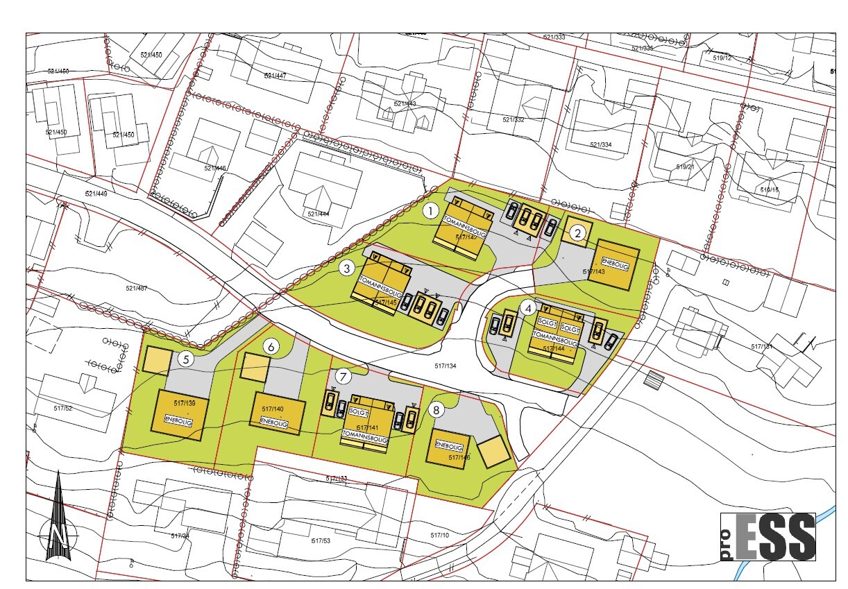 Det skal bygges fire tomannsboliger, med 8 enheter, og fire eneboliger.