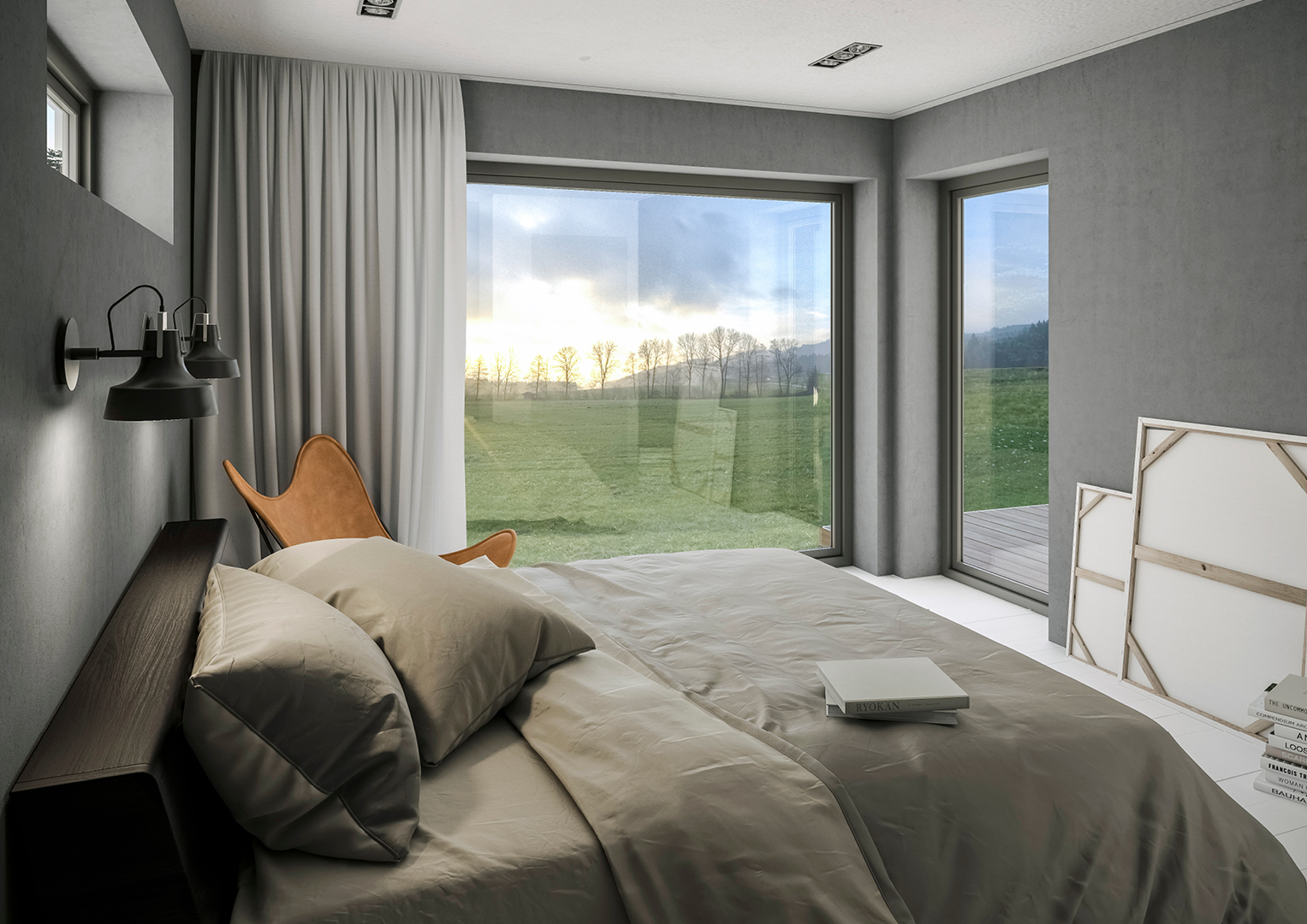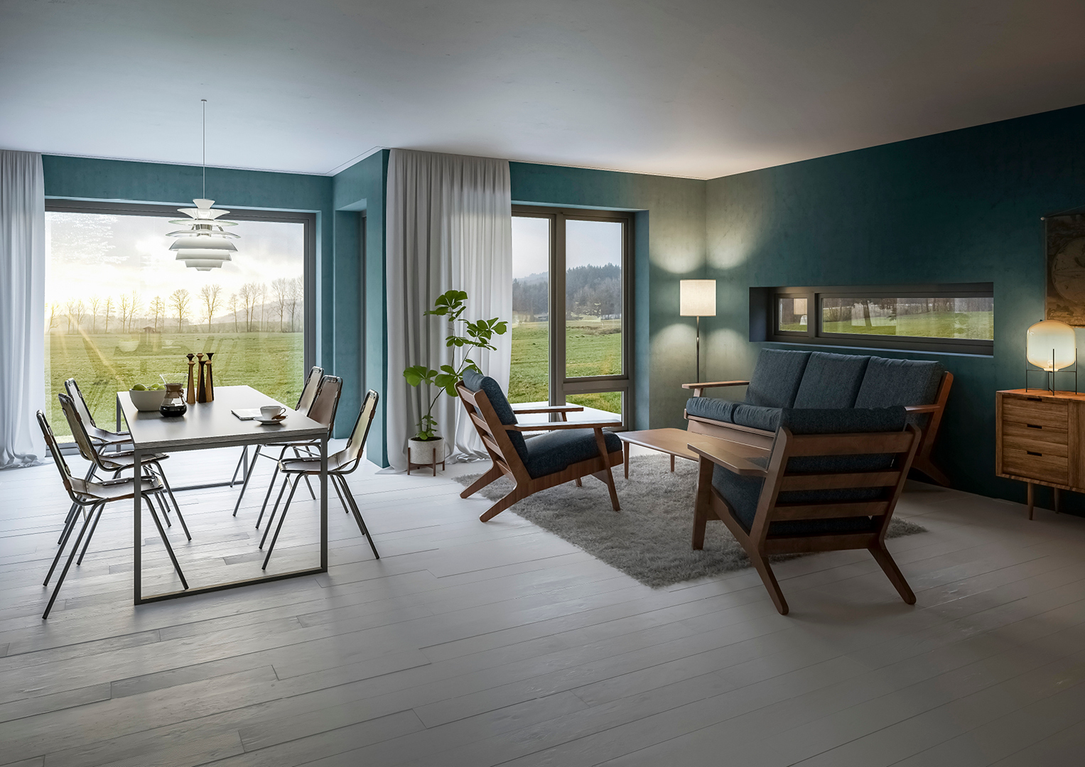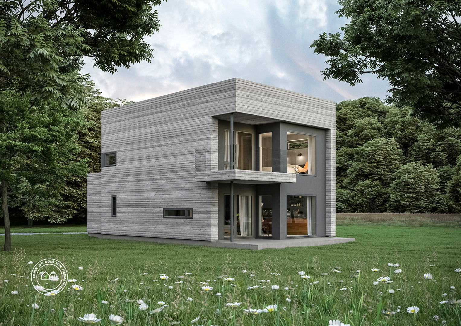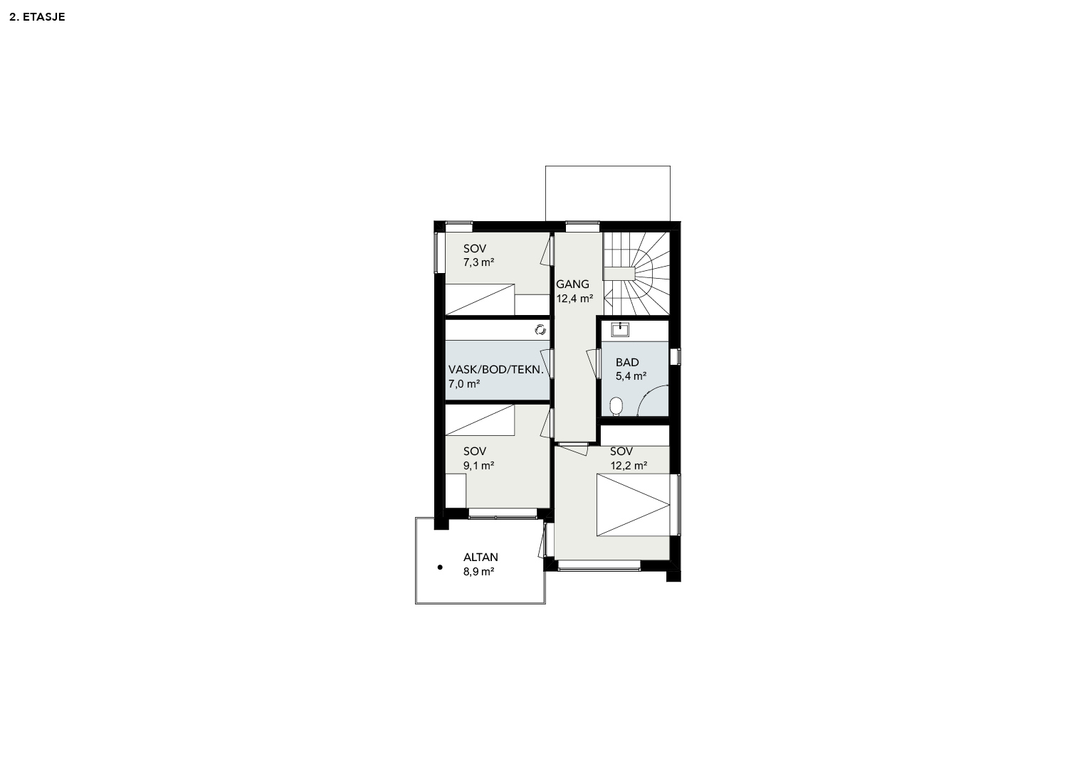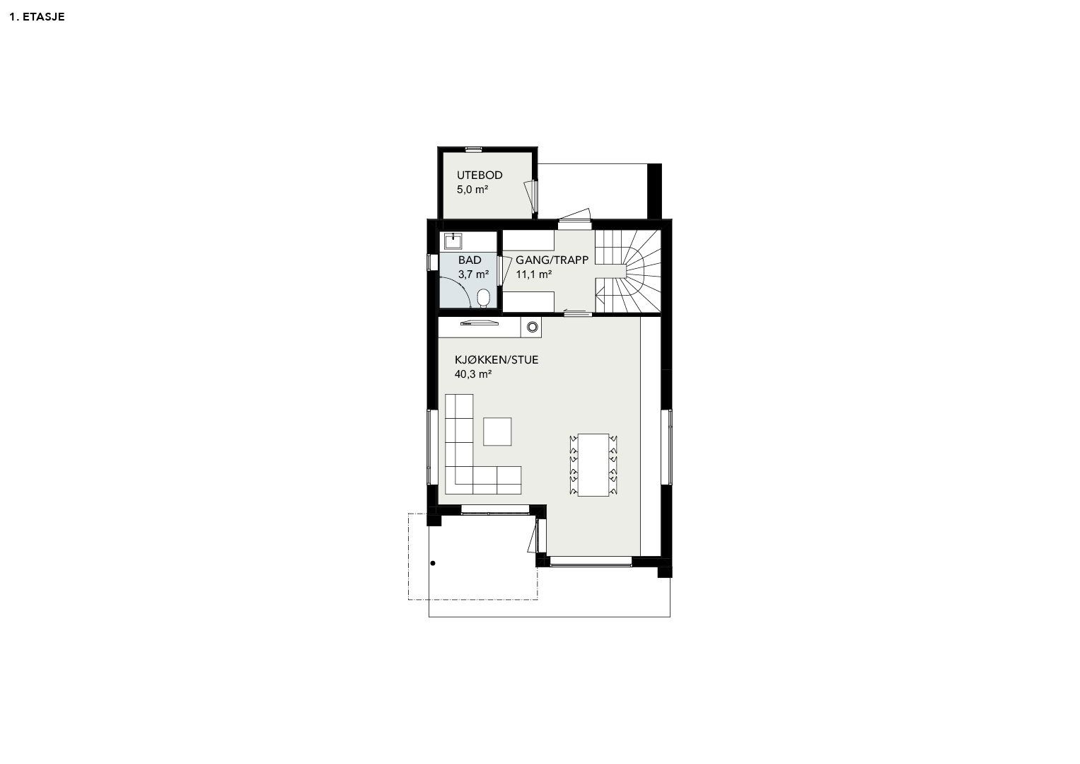 Et kompakt og stilfullt hus med overdekte uteplasser og en åpen stue- og kjøkkenløsning. Huset egner seg også fint som flermannshus.