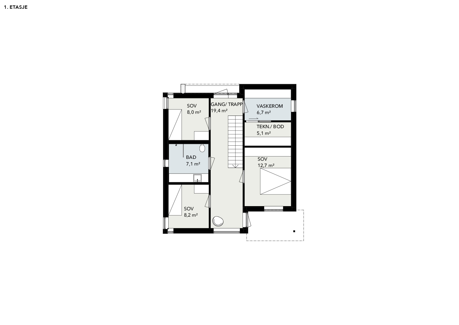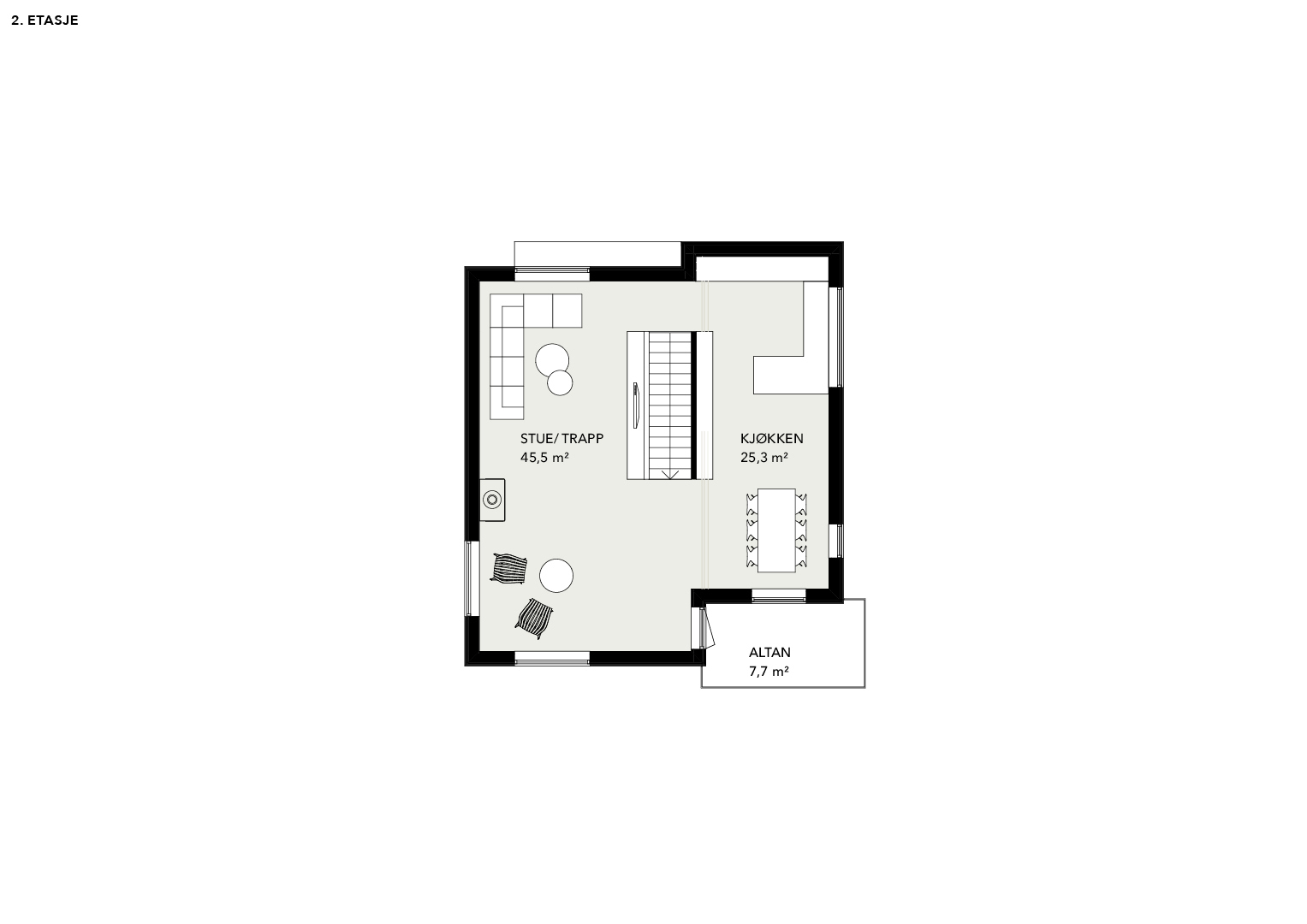 Dette sjarmerende huset fungerer ekstra godt på små tomter. Nyt ekstra etasjehøyde og møtet mellom moderne og klassisk arkitektur. Huset har åpen stue– og kjøkkenløsning. Huset egner seg også fint som flermannshus.