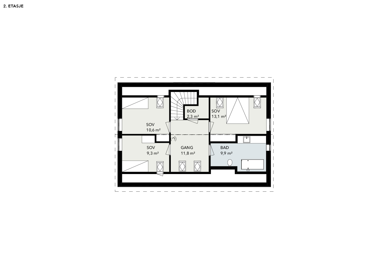 Franske vinduer møter tradisjonell arkitektur. Dette kompakte og innholdsrike huset har også mulighet for livsløpsstandard. Nyt det fine lysspillet fra takvinduene. Huset egner seg også fint som hytte.