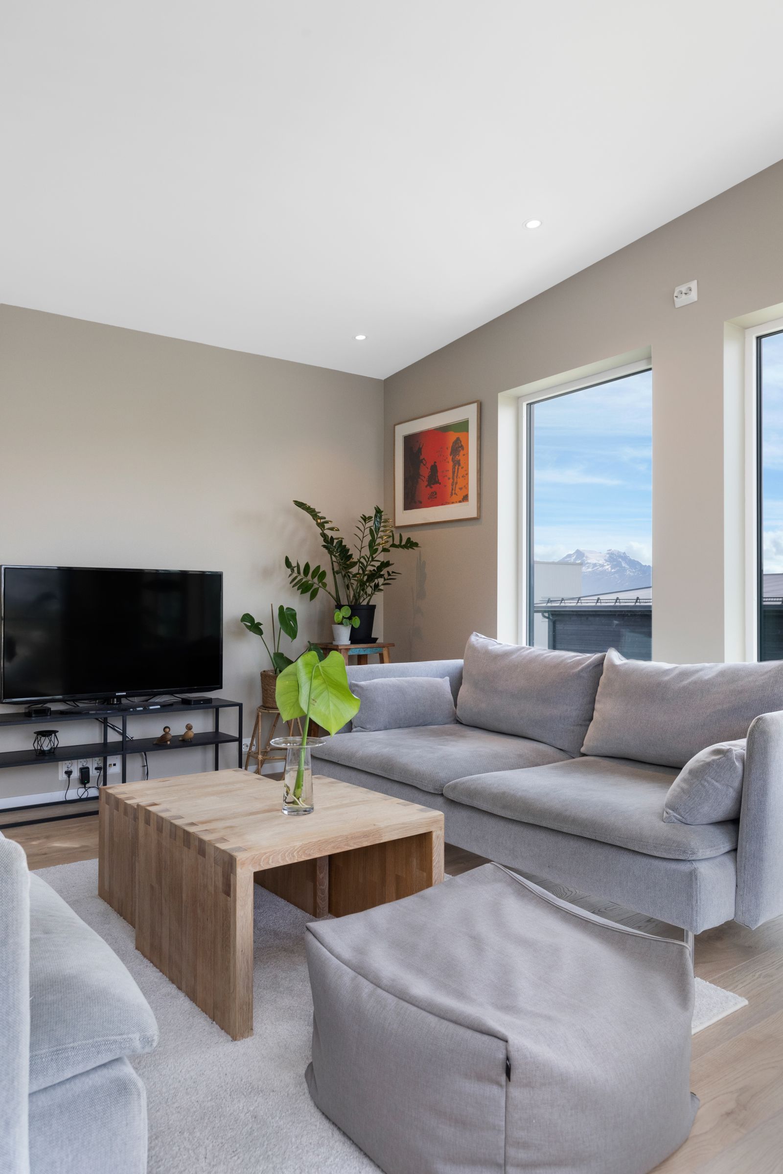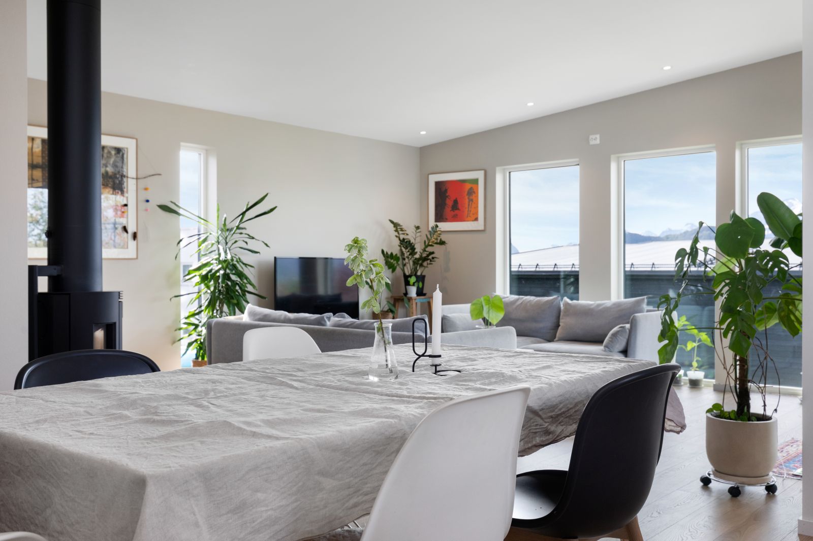 Svært innholdsrik designbolig med enkle linjer, og spennende detaljer! Store vindusflater gir mye fint lys inne i boligen. Her er det god plass til hele familien. For flere bilder, sjekk ut ngs.funkis på Instagram.